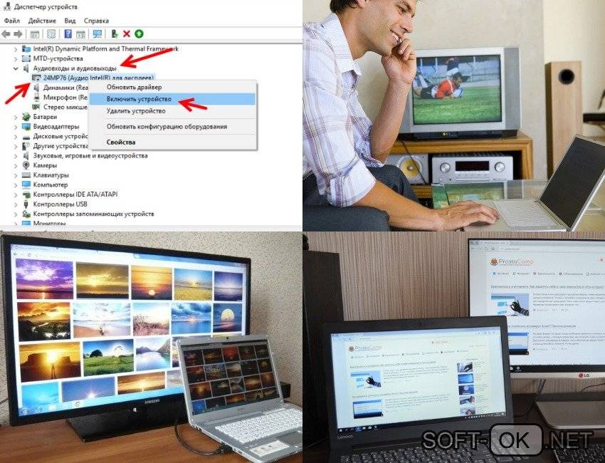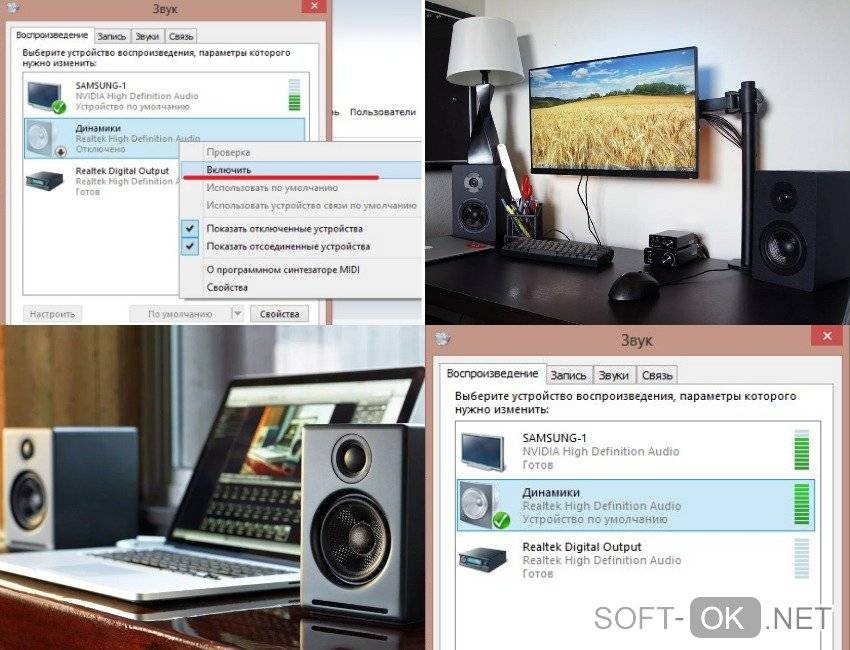 Щелкните правой кнопкой мыши значок звука в области панели задач на панели задач Windows и выберите «Устройства воспроизведения». Если вы подключили монитор через HDMI или DisplayPort, щелкните имя монитора в списке устройств. Если вы подключались через аудиосистему 3,5 мм и DVI или VGA, нажмите «Динамики».