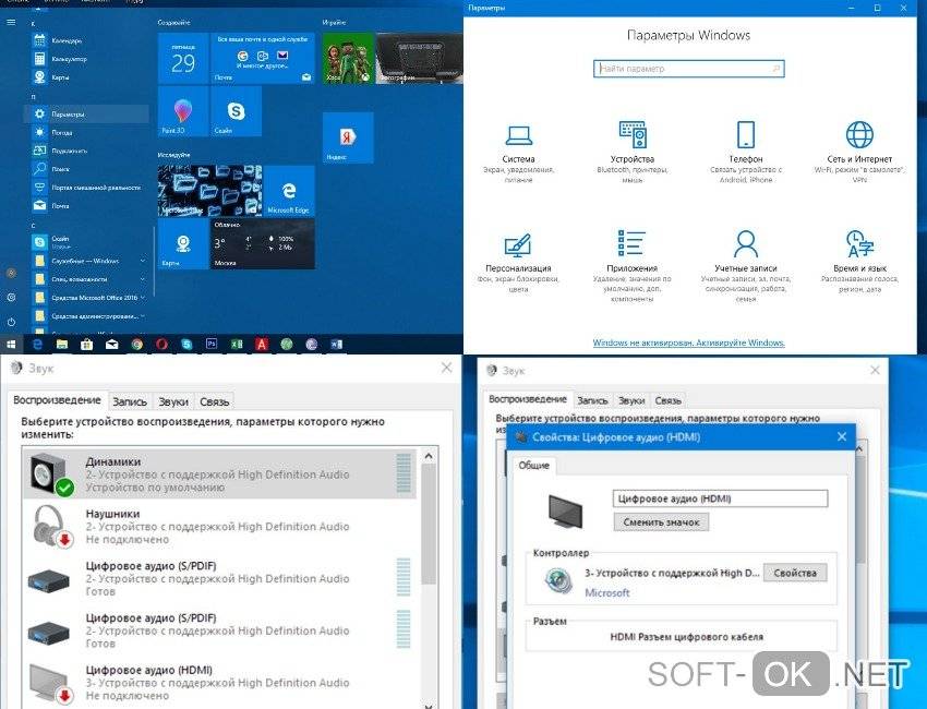 Чтобы переключить звук с HDMI на колонки в операционной системе Windows 10, нужно: