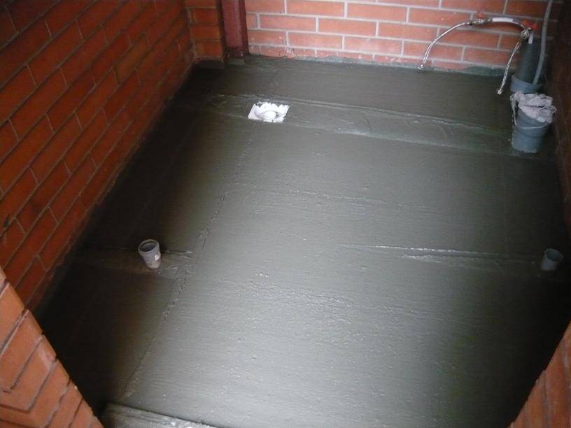 Затем выбоины и трещины заделайте специальным средством, после чего пол следует обработать гидроизолирующим жидким средством. Это нужно сделать непременно, поскольку слив для душа будет располагаться не на поддоне, а прямо на полу.