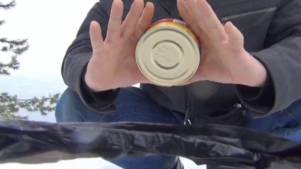 Нужно знать, что такой способ требует огромной физической силы. Но даже слабый человек способен им воспользоваться, если сильно голоден, а консервы открыть нечем.