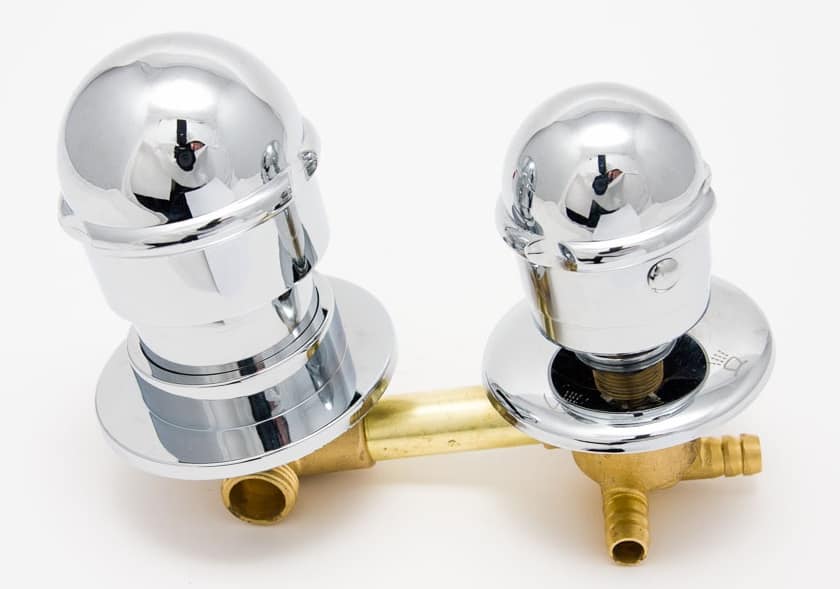 Двухвентильные смесители просты, имеют отдельные вентили для горячей и холодной воды. Управляются вручную. В устаревших и дешёвых моделях используются резиновые прокладки, в новых — керамические пластины.