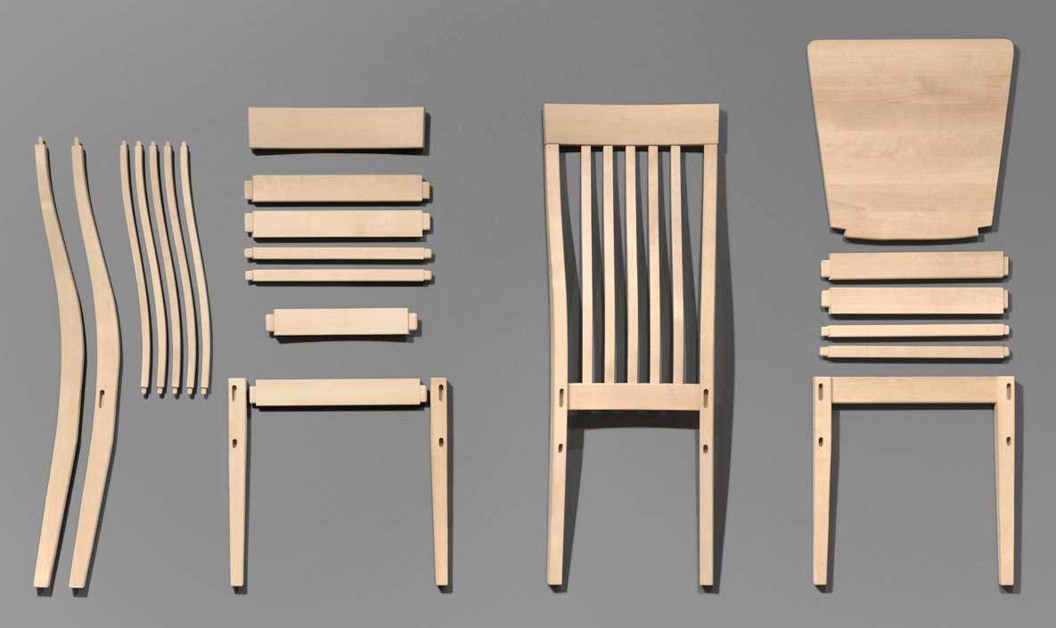 Чтобы разобрать деревянный каркас на составляющие при перетяжке кухонного стула, понадобится киянка. Нужно постучать инструментом по местам соединений деталей, и изделие легко распадется на составляющие – спинку, основу для сиденья и ножки. О хорошем состоянии деталей свидетельствуют отсутствие грибка и плесени, царапин, зазубрин и сколов. Если старые запчасти прогнили, они нуждаются в замене (так часто бывает, когда стул длительное время находился в сыром помещении).