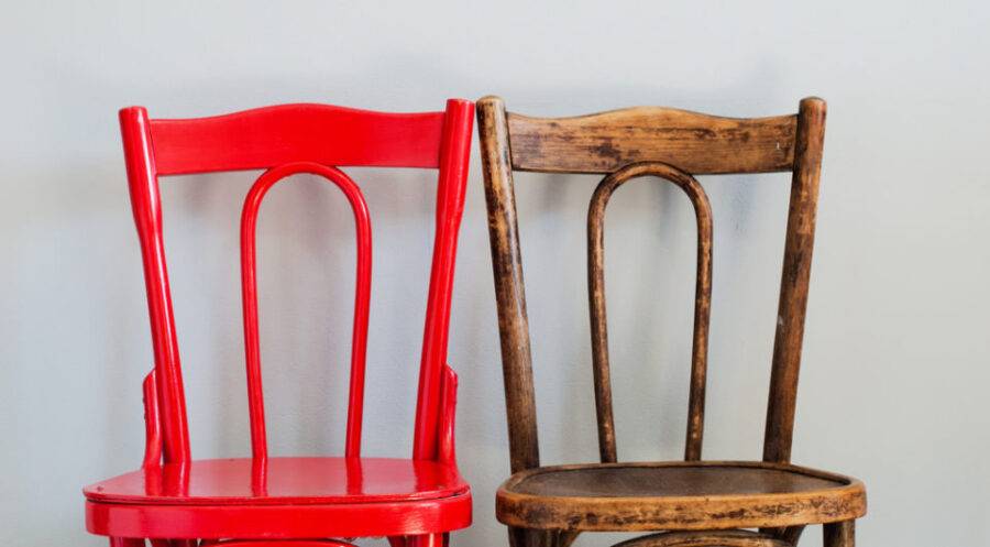 Сколы на уголках столов и стульев – основная причина потери эстетичности мебели. Чтобы убрать их, понадобится шпатлевка для мебели. Предпочтительнее взять светлую и по необходимости добавлять основной пигмент. Сформируйте ровную поверхность, позвольте высохнуть, а после высыхания ошкурьте поверхность мелкозернистой бумагой и при необходимости покройте лаком.