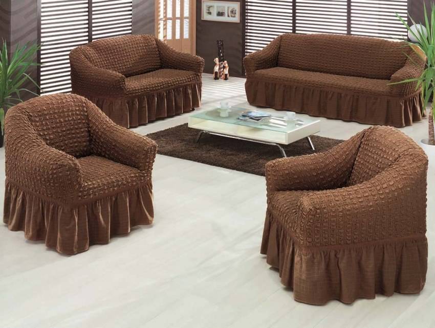 В гостиной уместны более привлекательные варианты из нубука, гобелена, кожи, жаккарда. Если в помещении много курят, стоит отдать предпочтение не впитывающим запах тканям. К последним относят шенилл. Дополнительным преимуществом обивки станут влагоотталкивающие свойства, тефлоновая или акриловая пропитка. Чем плотнее изделие, тем дольше оно сохранит первозданный вид.