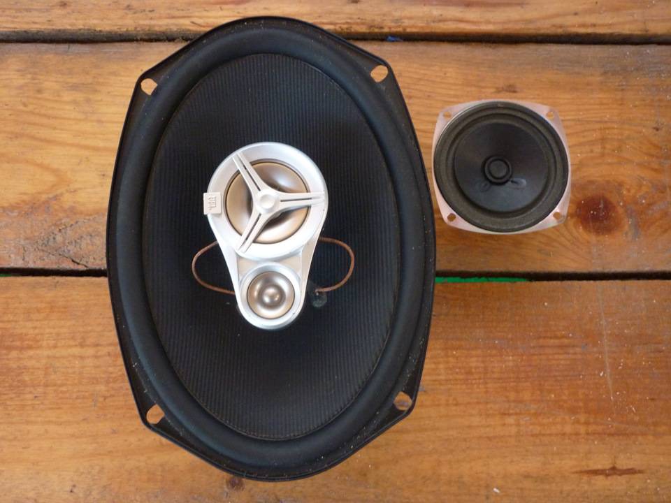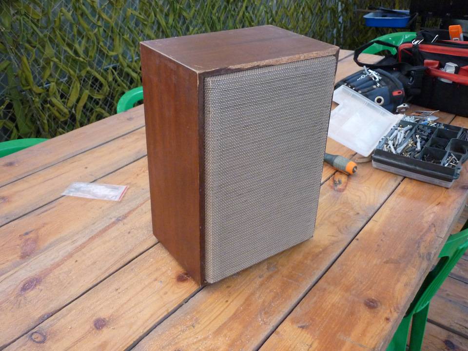 Произвёл эксперимент, просто ради интереса оторвал провод от компьютерной колонки и тупо накинул на авто-динамик — ничего не сгорело, не заклинило и динамик заиграл — хорошо так заиграл, ему просто не хватало закрытого объёма ! Эксперимент удался и решено было заморочиться с корпусами под динамики — Авито в помощь и в этот же день передо мной уже стояли ещё очень крепкие корпуса от какого то древнего “Маяка” времён СССР — купил за 200р.