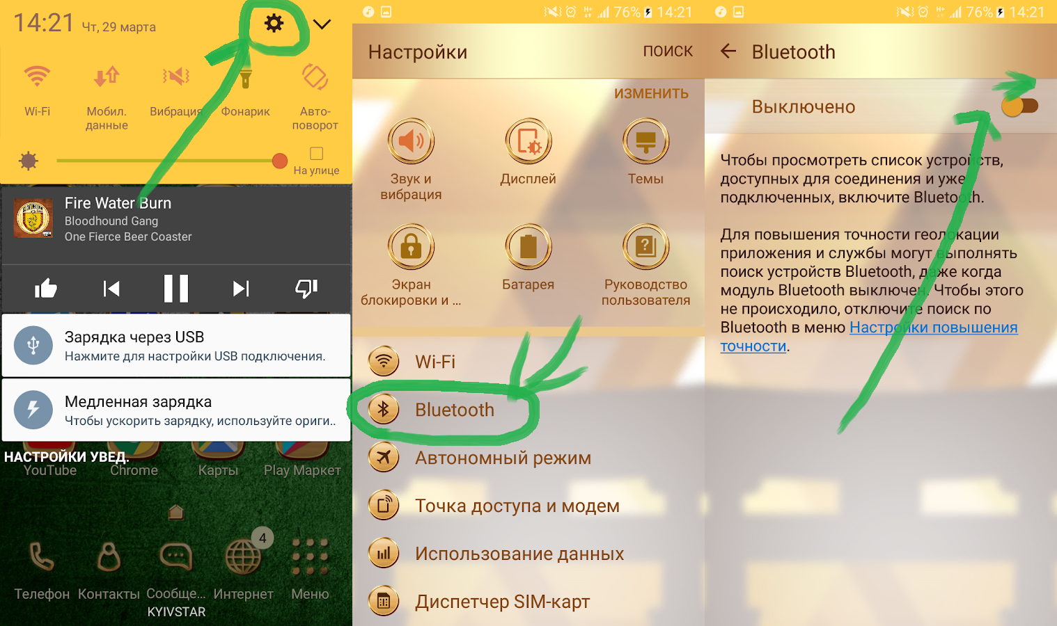 В разделе «Настройки» на телефоне перейдите на страницу «Bluetooth» и воспользуйтесь ползунком «Включить». На разных моделях смартфонов действия могут отличаться.