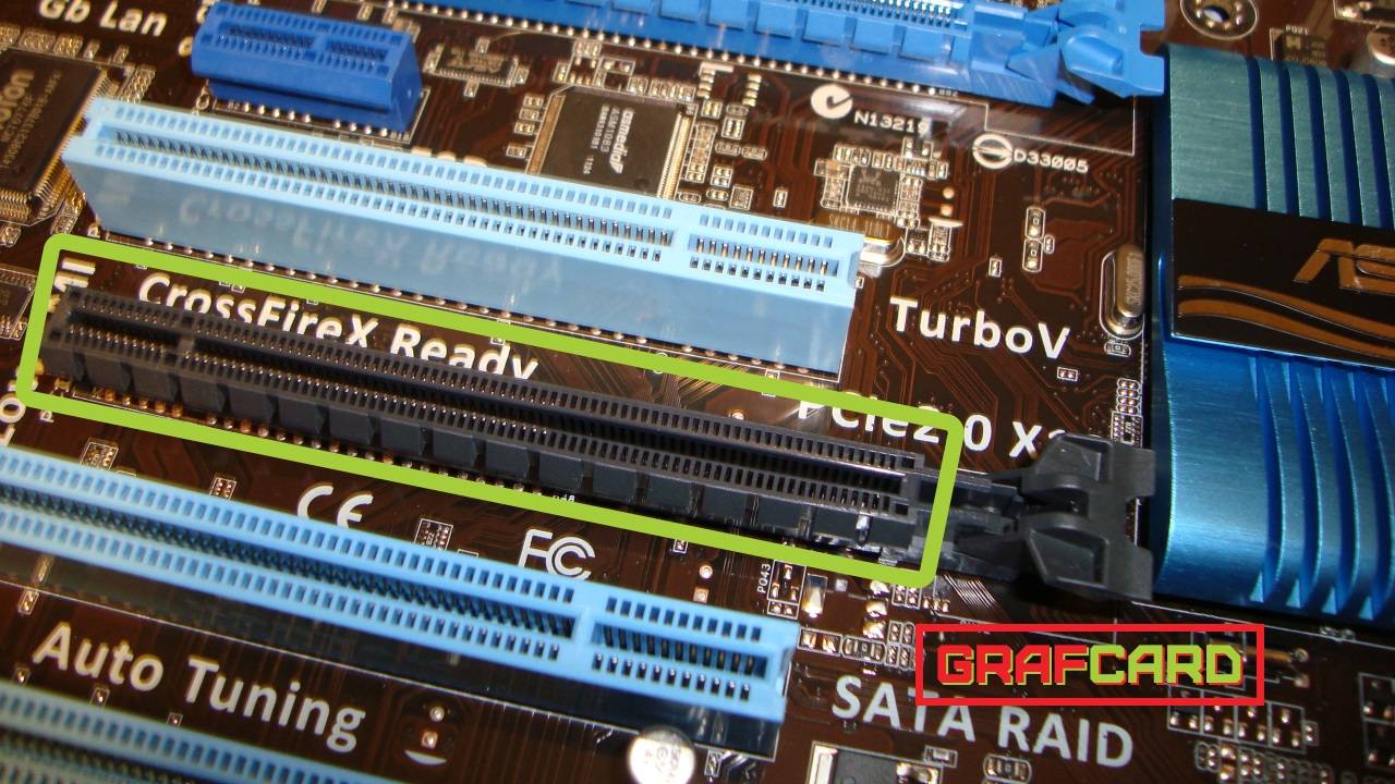 Если вы решили устанавливать графический ускоритель, не поленитесь открыть боковую крышку системного блока и проверить наличие и тип слота. PCI — E представляет собой длинный тонкий разъем, который больше всего похож на слот для подключения оперативной памяти. Несмотря на подобие, габариты разные, поэтому перепутать их сложно. Этот порт чаще всего маркируется голубым цветом.