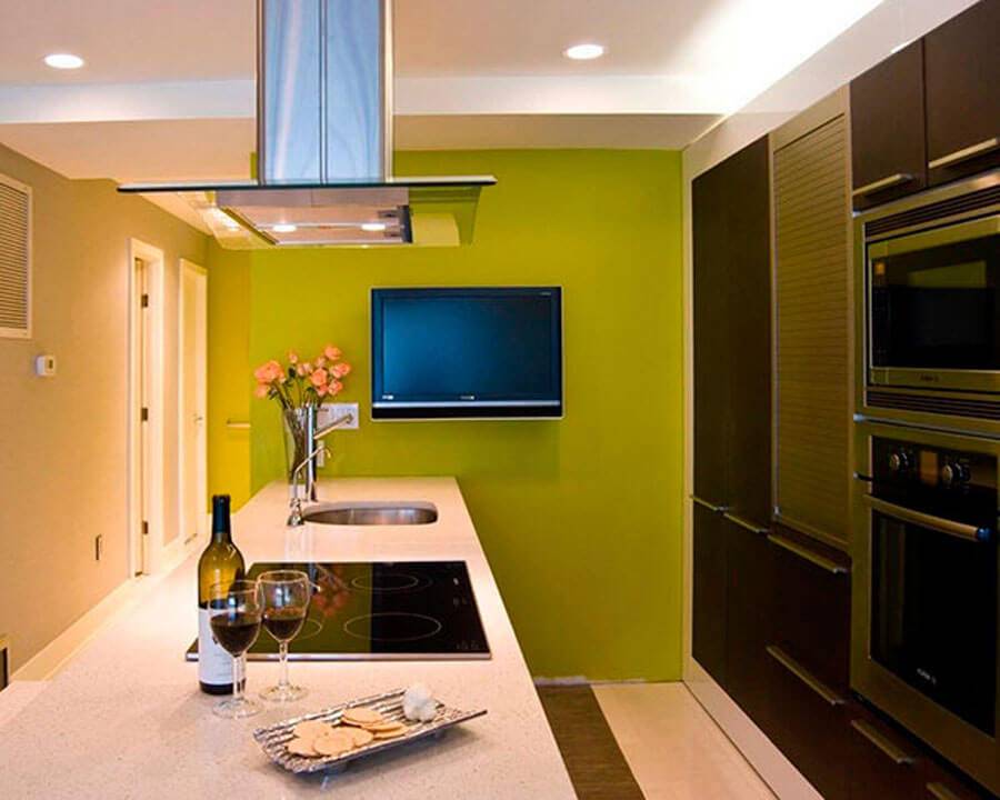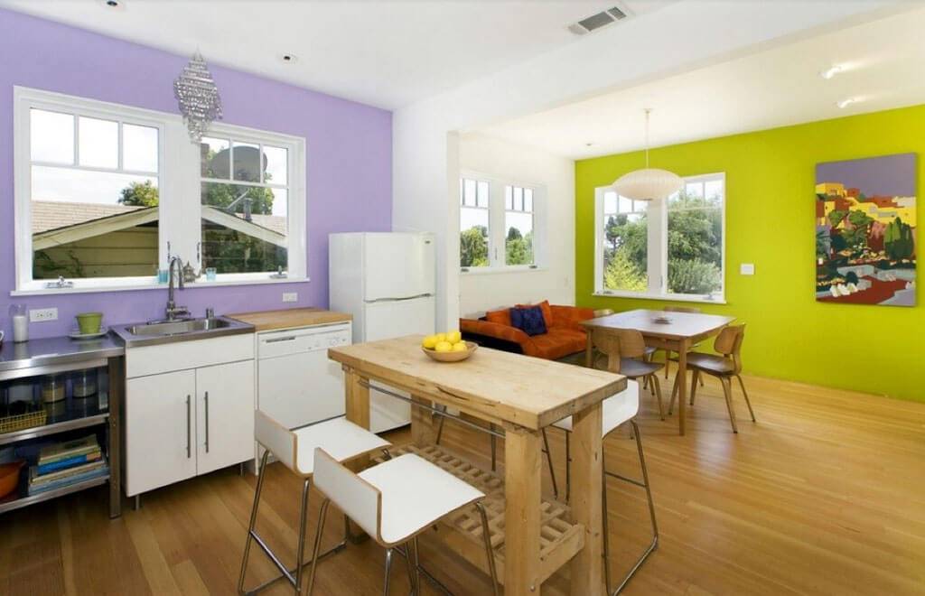 Яркие оттенки подойдут для просторных кухонь с площадью от 15 кв. м. Сочетание контрастных оттенков может визуально сузить пространство кухни. Поэтому на небольшой территории такое цветовое решение лучше не применять.
