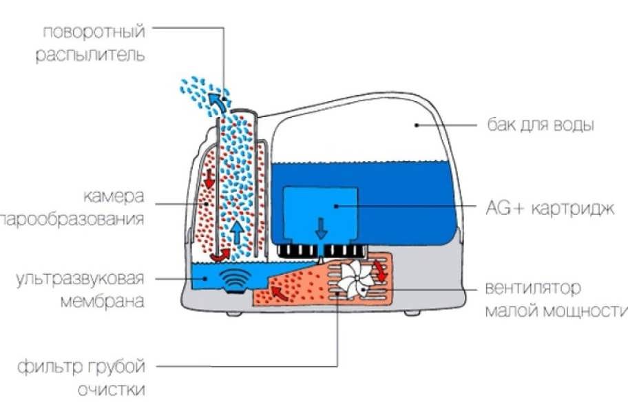Вентилятор выносит ее в воздух, за счет чего влажность в помещении повышается. Ультразвук не оказывает негативное влияние на организм животных или человека, такие модели быстро и эффективно повышают влажность в помещении.
