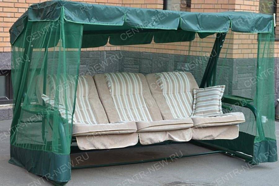 Дополнительное оснащение в виде полочек, подстаканников, москитных сеток повышает эргономичность и комфортность садовых качелей.