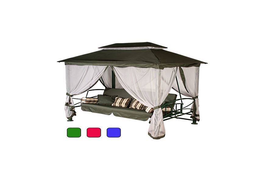 | Дачно-садовая модель на усиленном каркасе. Несущая труба каркаса: D60 мм Сиденье из панцирной сетки. Откидная спинка полностью раскладывается при помощи механизма. В комплекте: · Водонепроницаемый тент с вшитой москитной сеткой · Подстаканники · Мягкие чехлы качелей на молнии (наполнитель – формовой поролон 8 – 14.5 см). В модели предусмотрена установка светодиодного фонаря (продается отдельно).  | Премиум-модель в восточном стиле. Каркас прямоугольной формы на 4 устойчивых ножках декорирован коваными элементами. Сиденье 188 * 53,5 см из наварной решетки, спинка полностью раскладывается. В комплекте: · Тент от солнца с антимоскитнойсеткой · Мягкий матрас-чехол с подлокотниками (полиэстер, наполнитель Холлкон (полиэфир) · 4 подушки, 2 валика Все мягкие детали со съемными чехлами на «молнии».  | |