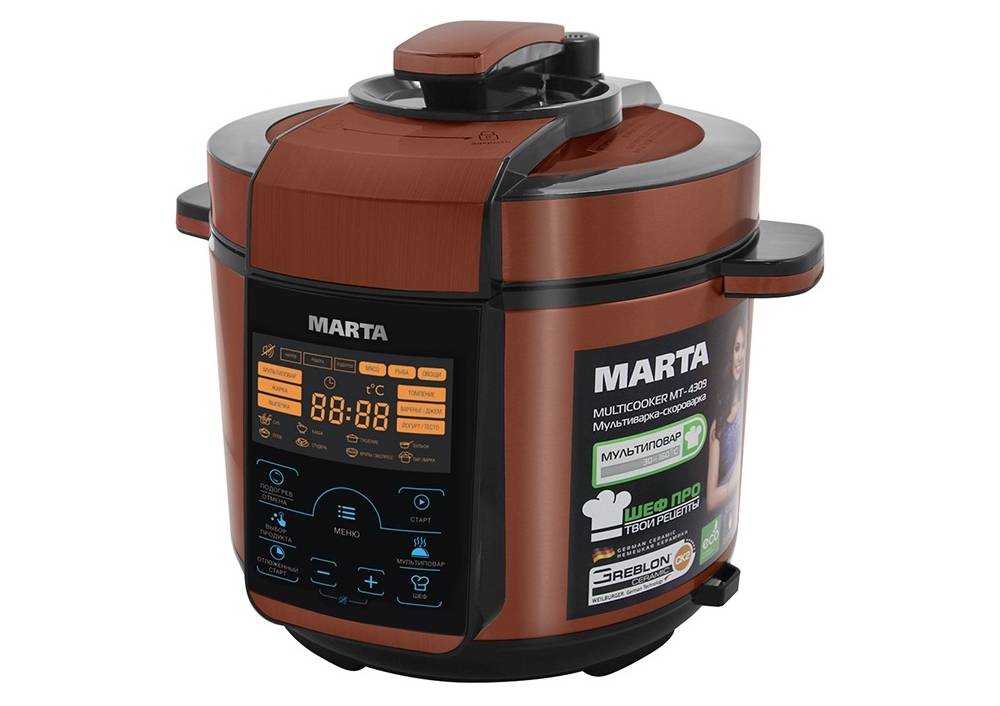 Также в «Марте» можно эффективно проводить стерилизацию посуды. Мягкий свет на экране поможет ориентироваться в настройках, даже если вы находитесь в условиях плохого освещения. У модели есть все шансы называться идеальным семейным помощником, однако она не имеет блокировки от детей.