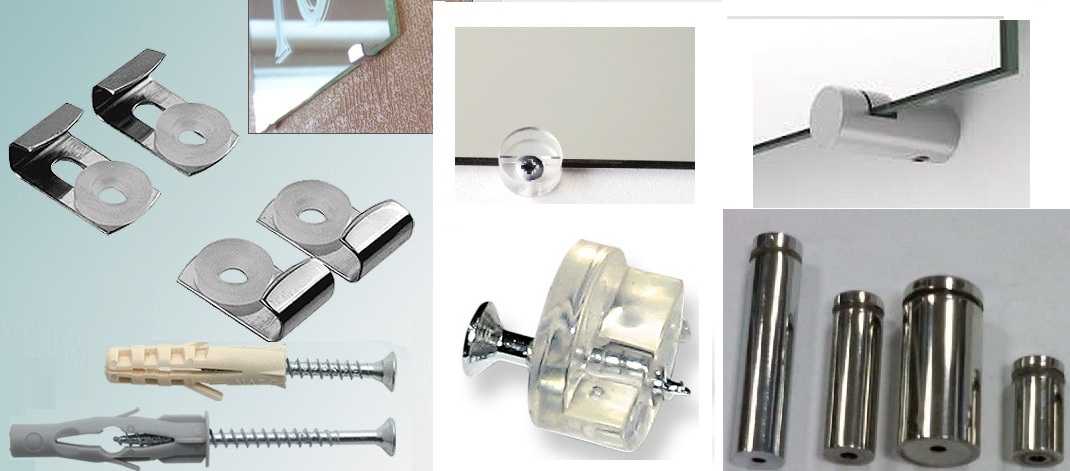 Если зеркало без рамки, то можно использовать различные представленные в магазинах виды фурнитуры: скобы, профиль, кронштейны, зажимы и планки.