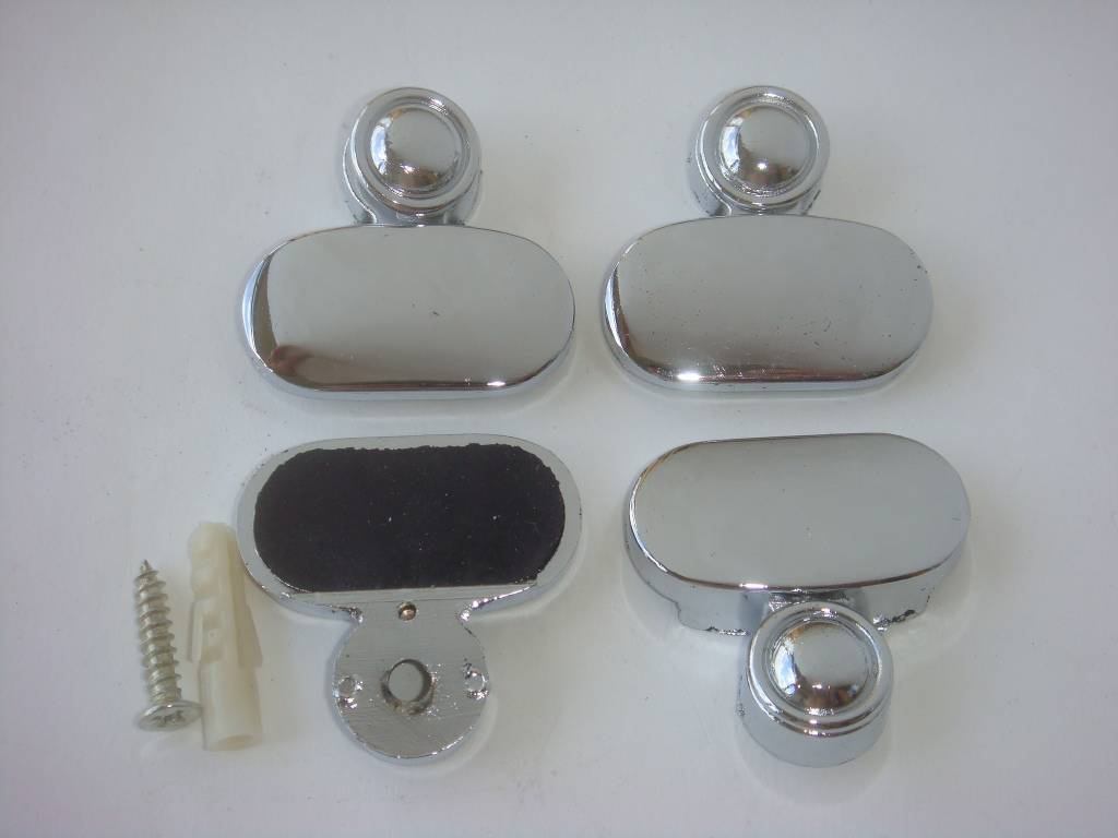 Устанавливаются они как обычные дюбели. Сначала размечаются отверстия для установки (прикрепите зеркало к стене, сделайте отметки карандашом или маркером), просверливают отверстия, устанавливают пластиковые дюбели на дюбели. Затем через отверстие в зеркальной поверхности продевается застежка с пластиковым колпачком и устанавливается на место. Завершающий этап – установка декоративных накладок.