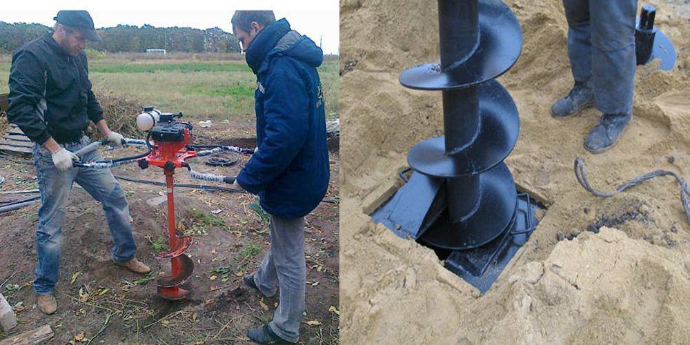Инструмент, используемый для бурения, называется шнеком. По мере углубления в грунт, управлять им становится труднее, потому может понадобиться помощь. Скважину или колодец обкладывают заводскими бетонными кольцами над землей, укрепляя осадку.
