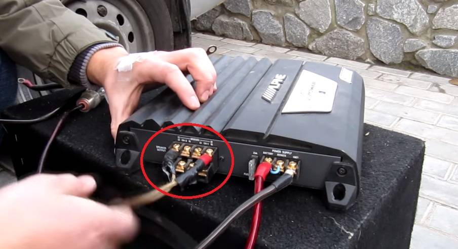 Последним шагом является подключение колонки к усилителю, в зависимости от количества каналов на самом усилители варьируется и количество клемм. Один канал — это две клеммы (+) и (-). Зачастую усилители бывают: