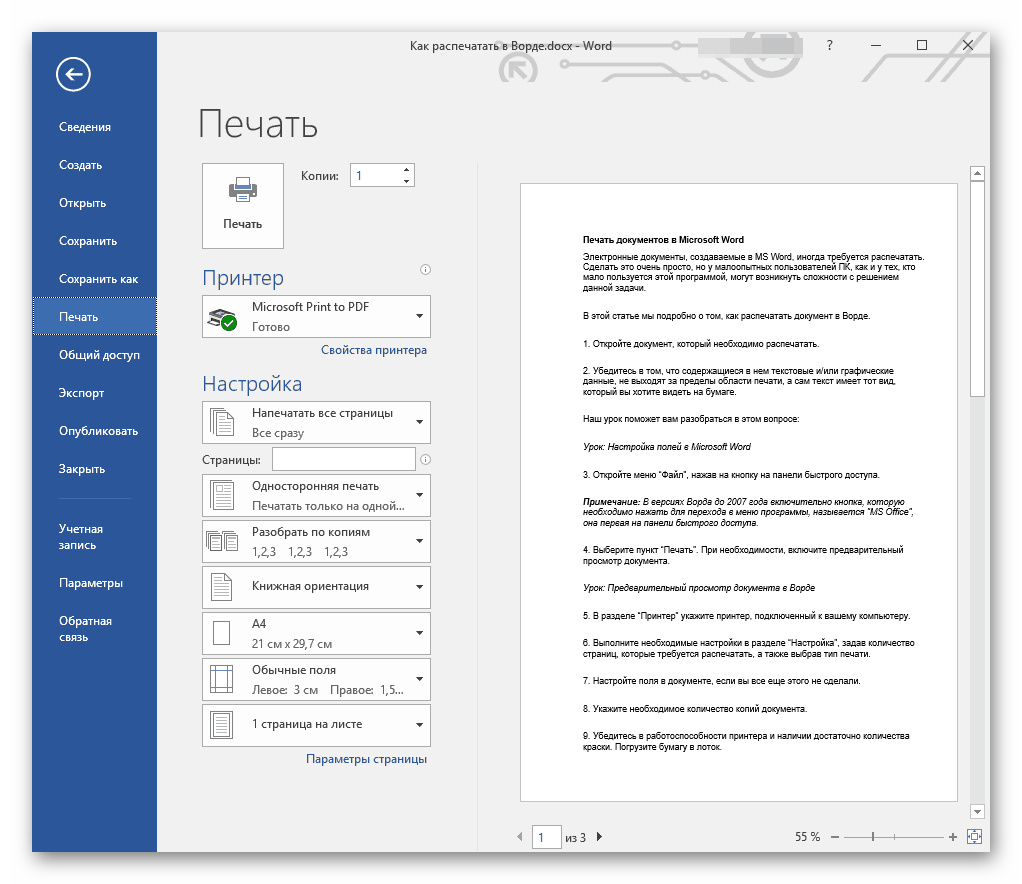 Благодаря тому факту, что корпорация Microsoft сама разрабатывает и обновляет свои приложения Office, у неё есть возможность унифицировать их интерфейс и некоторые базовые возможности — печать документов стала одной из них. Почти во всех офисных программах от Майкрософт вам необходимо будет произвести одни и те же действия, чтобы принтер выдал лист бумаги с необходимым содержимым. Настройки печати в программах из пакета Office также абсолютно идентичны, так что вам не придётся каждый раз сталкиваться с новыми и неизвестными параметрами.