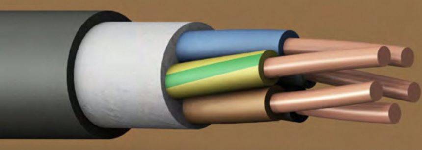 Кабель NYM (его российский аналог – кабель ВВГ), с медными жилами, круглой формы, с негорючей изоляцией, соответствует немецкому стандарту VDE 0250. Технические характеристики и область применения, практически одинаковые с кабелем ВВГ. Выпускаются двух-, трех- и четырехжильные с сечением жил от 1,5 до 4,0 мм2.
