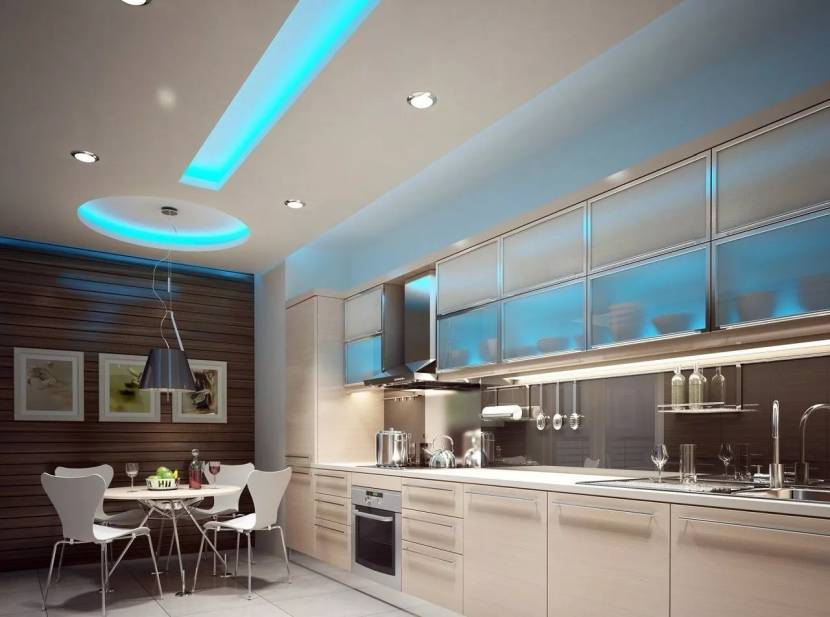 Светильники на натяжном потолке в кухне