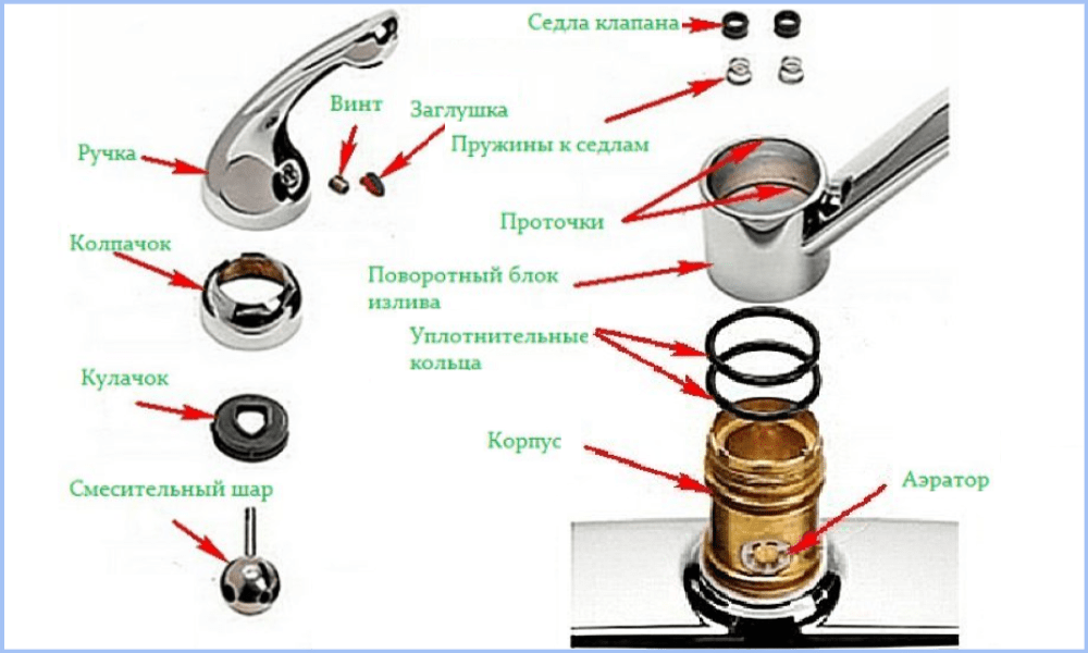 Как разобрать смеситель однорычажный шаровый, смотрите ниже.
