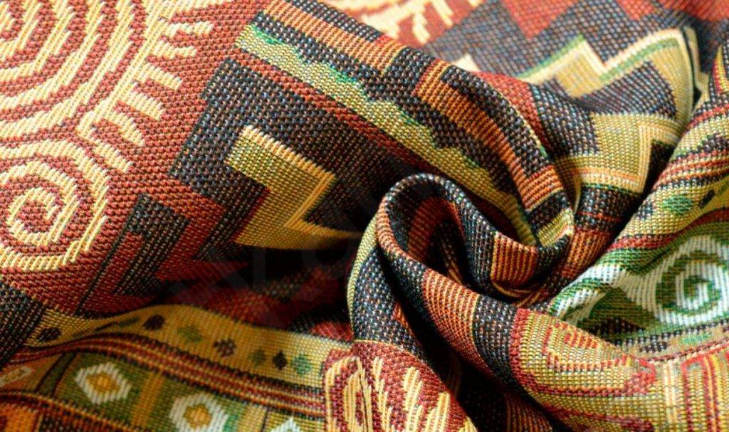 - Гобелен. Ткань с разнообразными узорами, полученная путем сложного переплетения шерстяных, хлопковых, шелковых, серебряных или золотых нитей. Отличается повышенной износостойкостью, большим выбором орнамента. Такой материал не требует особого ухода, обладает антистатическими свойствами.