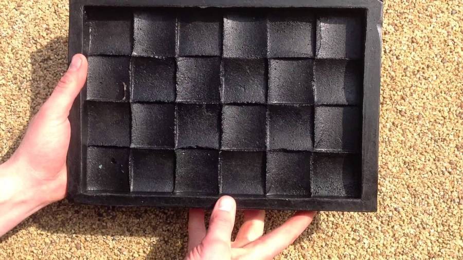 Некоторые делают большой короб, допустим, размером метр на метр, и делят его перегородками, чтобы за один раз делать две, четыре или больше плиток. Более творческие дачники располагают перегородки под разными углами друг другу, что создает необычную форму плитки — от треугольников до ромбов. Получается большой квадрат из небольших и разных по форме плиток, которые можно подгонять друг к другу как угодно.