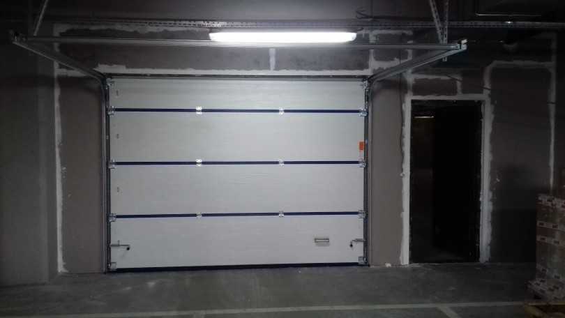 - Надежность. Так как конструкция изготовлена из цельного полотна, то взломать подъемные двери в гараж практически невозможно.