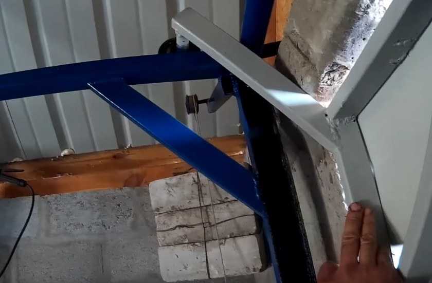 От того, насколько точно будут установлены опоры, зависит надежность и плавность срабатывания механизма подъема. На приваренные к стационарной раме шпильки одевают бороздковые ролики. К нижней балке панели приваривают дополнительные Г-образные кронштейны, к которым будет крепиться трос лифта-подъемника опорных ворот.