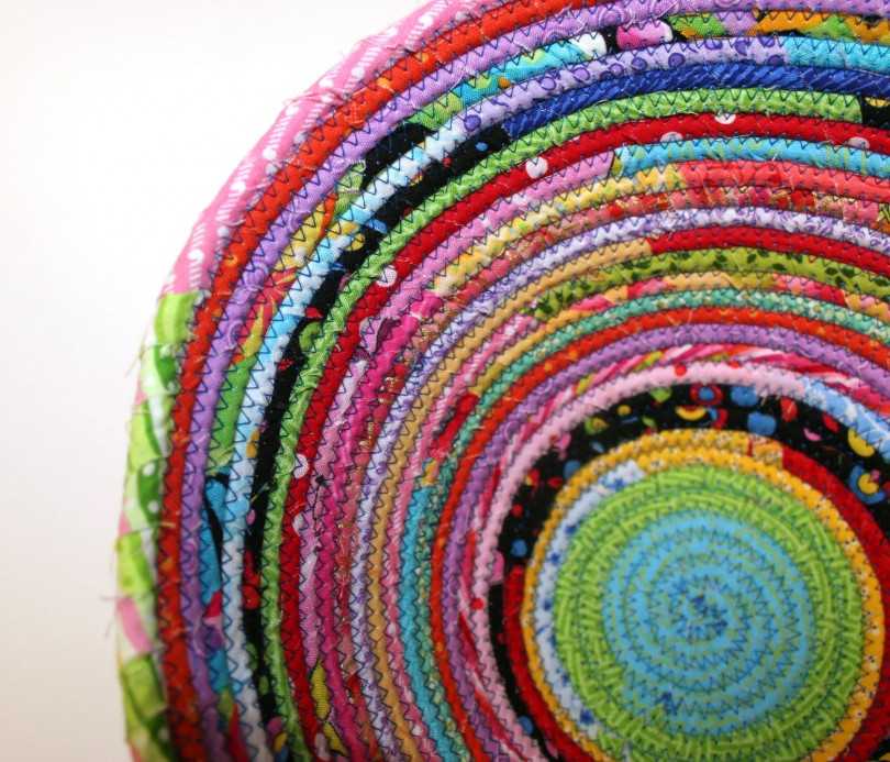 Можно использовать для ткачества пластиковый обруч с глубокими насечками, натянуть основу по диаметру и укладывать материал по кругу. Трудность состоит в том, чтобы проложить нити строго между противоположными точками, чтобы они пересеклись точно посередине.