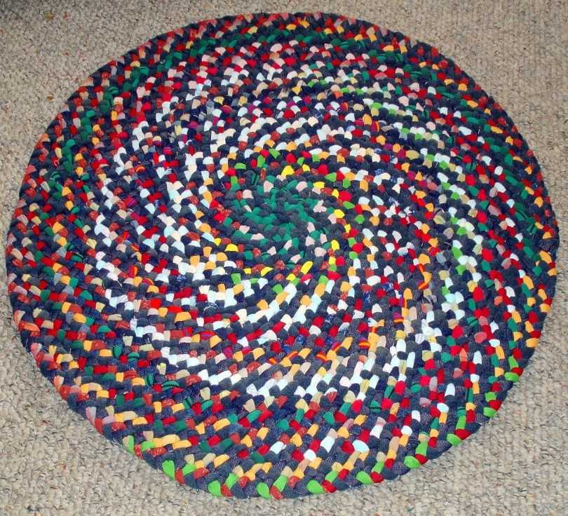 Такие ковры выглядят более солидно, напоминая прочные циновки. Сделать их будет немного сложнее, но только на первых порах. Производят их из толстых нитей или все тех же полосок ткани.