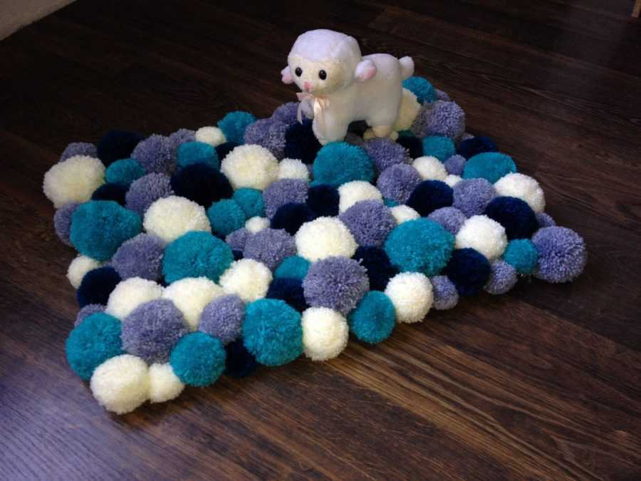 Пошаговые инструкции по изготовлению своими руками ковриков из помпонов, сделанных из разных материалов