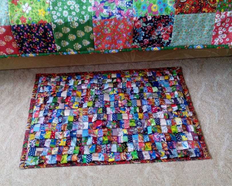 Изготовление коврика пэчворк требует более тщательного подбора материалов, а если задумана сложная вещь, то и немалого навыка. Это та самая техника, в которой сделаны знаменитые «бабушкины» лоскутные одеяла.