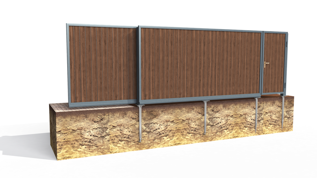 Визуальная часть свежеустановленной ограды (обычно это неокрашенные оцинкованные профлисты) впоследствии демонтируется и заменяется на более привлекательную и качественную составляющую. А вот фундаментная часть конструкции изначально устраивается по всем правилам. Обеспечив достаточную капитальность фундамента, в дальнейшем можно будет не беспокоиться о проведении дополнительных работ нулевого цикла.
