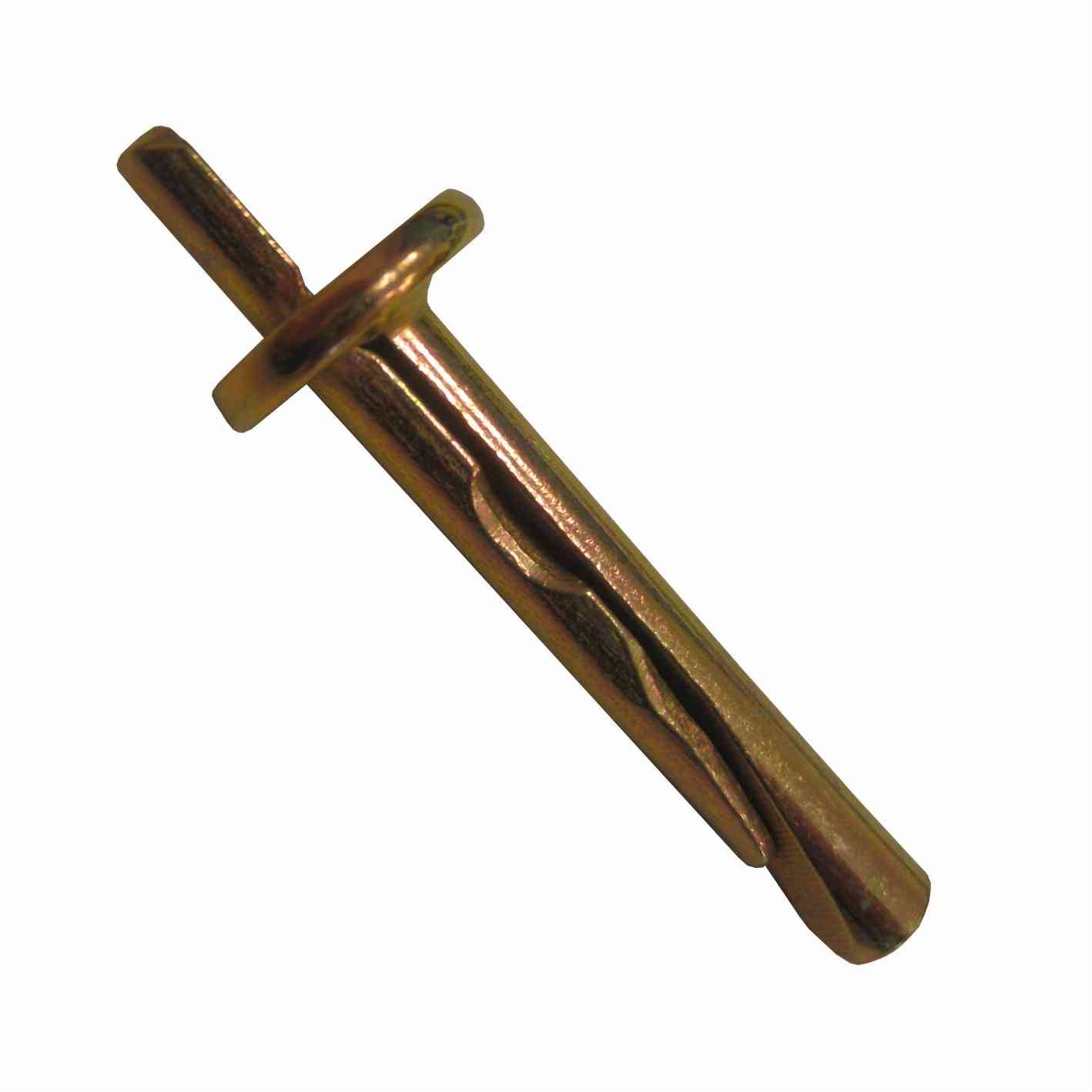 Шаг 2. Затем устанавливаются подвесы. Они закрепляют только основные продольные потолочные профили, а для поперечных элементов не нужны. Крепеж каждого подвеса к потолку осуществляется с помощью двух дюбель-гвоздей (если же при прибуривании подвеса обнаруживается пустота в плите, то для надежной фиксации используется анкер клин, который забивается при помощи молотка).