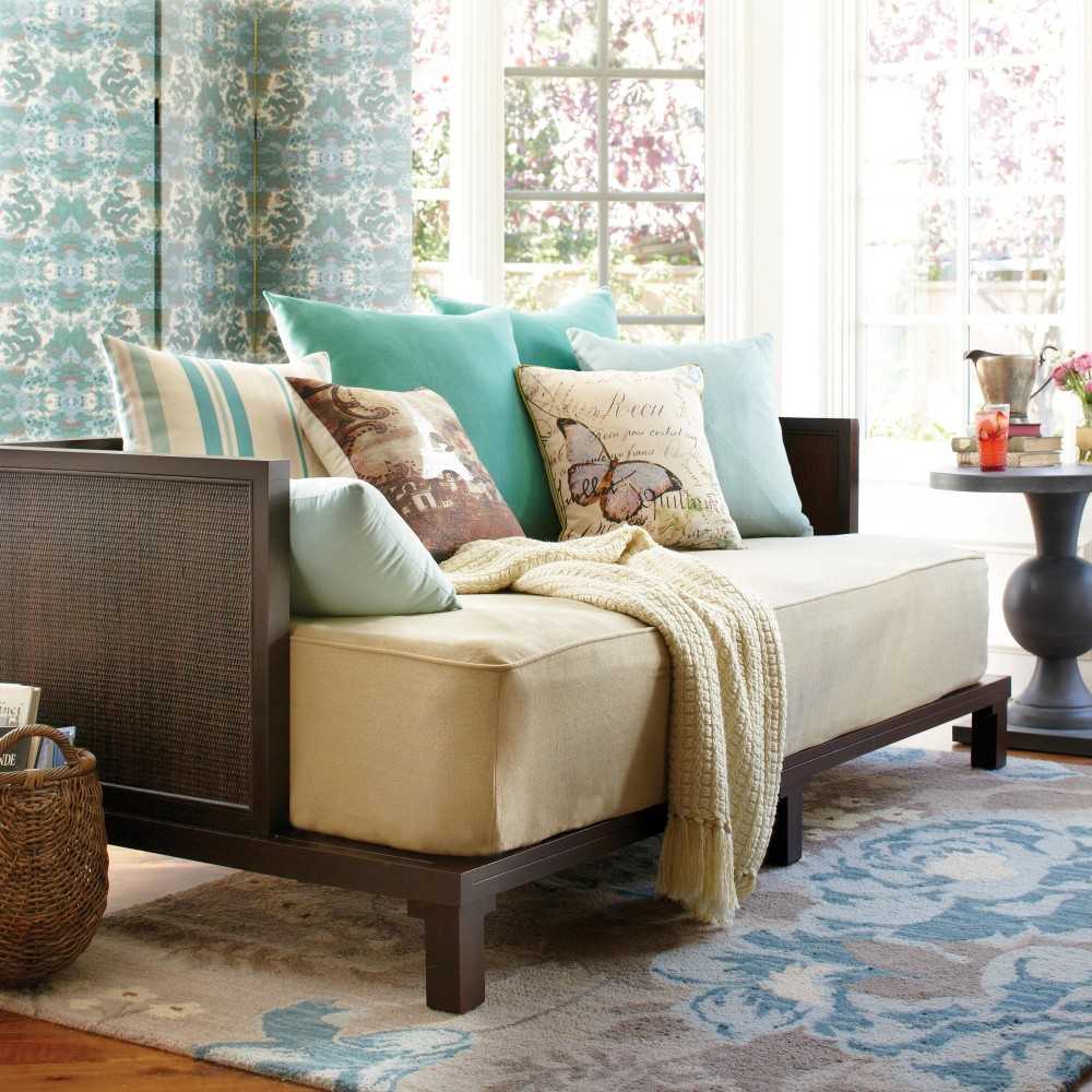 Подбирайте цвет подушек к дивану и общему дизайну комнаты.