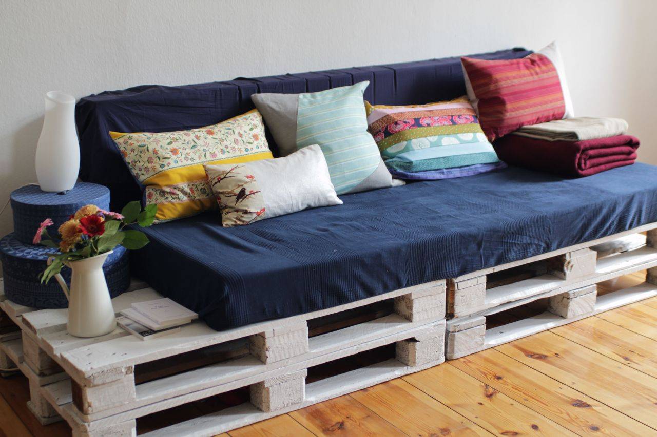 Диван из поддонов – необычное и оригинальное решение, при этом крайне простое и стоящее копейки.