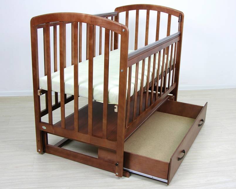 В большинстве кроваток с маятниками также есть специальные ящички для хранения белья.