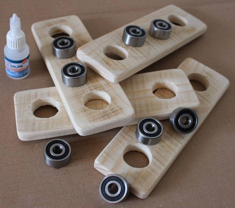 Далее с помощью болтов и шайб соберите шарниры на деревянных пластинах.