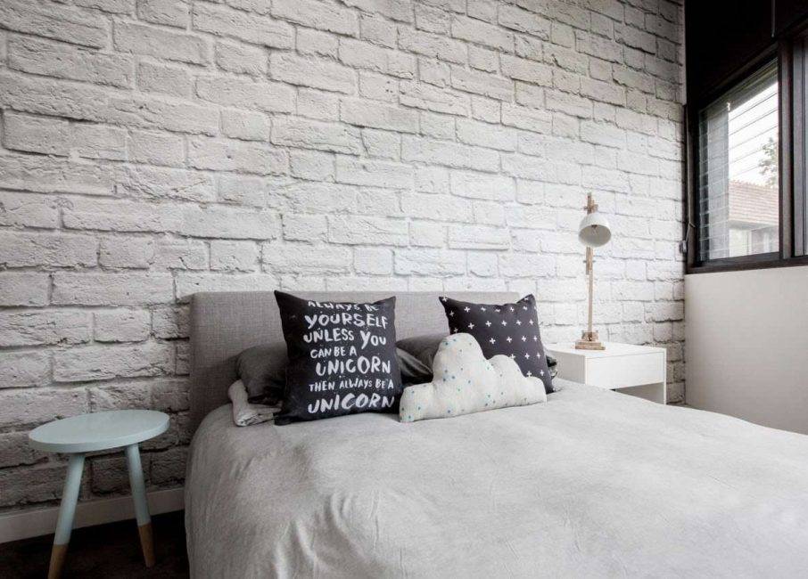 В спальне чаще всего кладку делают за изголовьем кровати или для отделения спальной зоны от гардероба. Отличный вариант – обрамление кирпичом фотообоев. Благодаря этому спальня выглядит более свежо и стильно. Так как спальня – это место отдыха, ее чаще всего дополняют нежными и уютными деталями, которые способствуют расслаблению. Но использование декоративных элементов зависит от ваших вкусов.