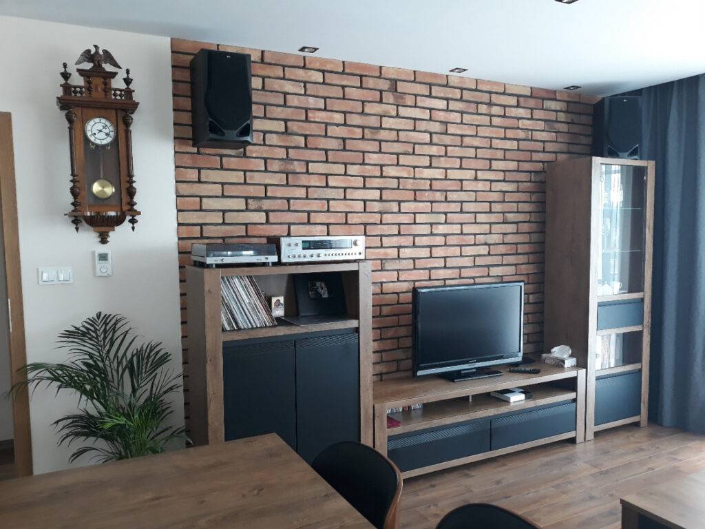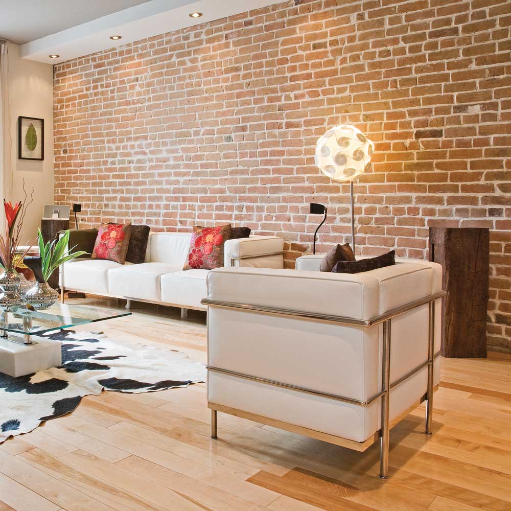 Кирпич в гостиной может быть и обыкновенной стеной, открытой при ремонте из-под старых слоев штукатурки. Чаще всего это происходит во время ремонта в многоквартирном доме. Такой кирпич необходимо тщательно очистить и защитить подходящим пропиточным средством (его можно купить в строительных супермаркетах).