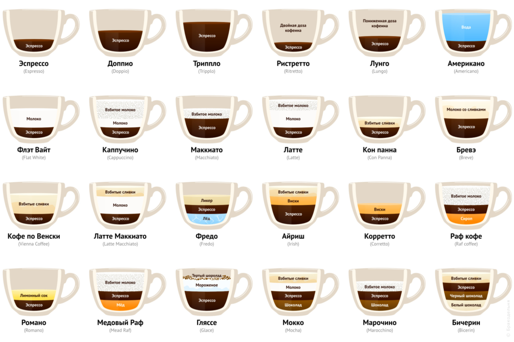 Виды кофе эспрессо и напитки, которые на нем основаны