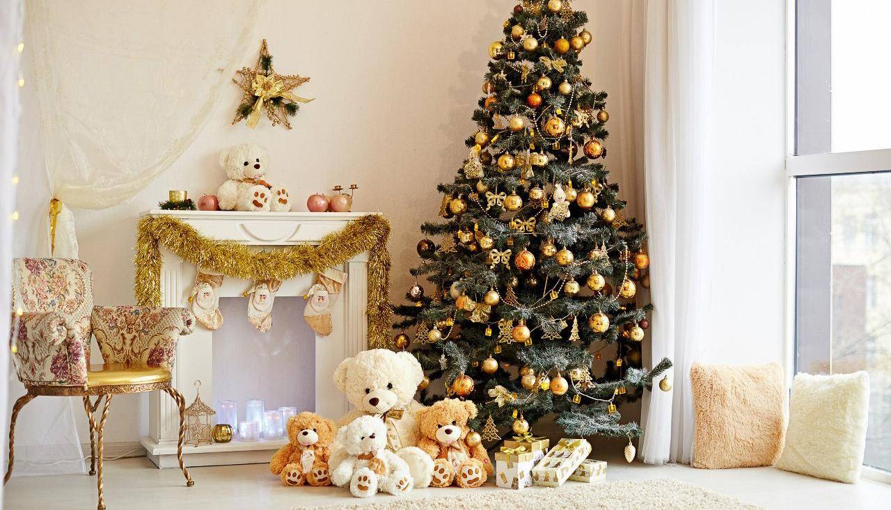 Золотистый новогодний интерьер