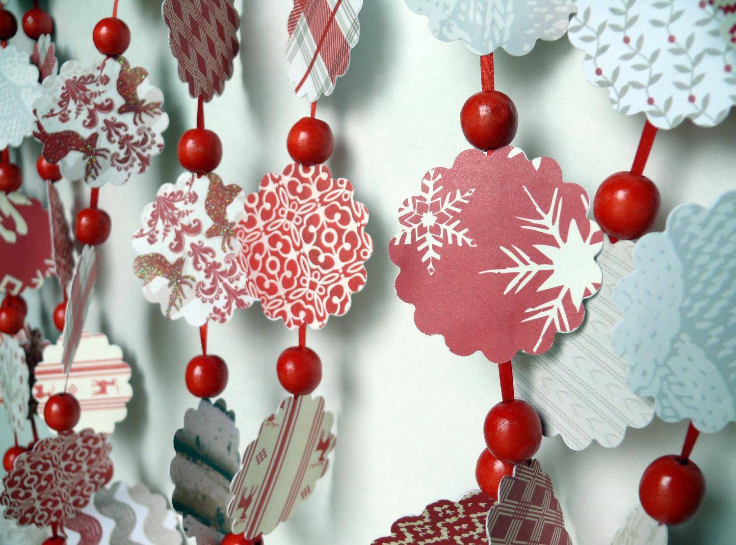 Гирлянда может состоять из любых украшений, связанных между собой в длинную ленту. В Советском Союзе были популярны гирлянды из бумажных фигурных флажков с красивыми картинками, ведь их просто сделать своими руками: вырезать флажки любой формы из цветной бумаги, картона или новогодних открыток.