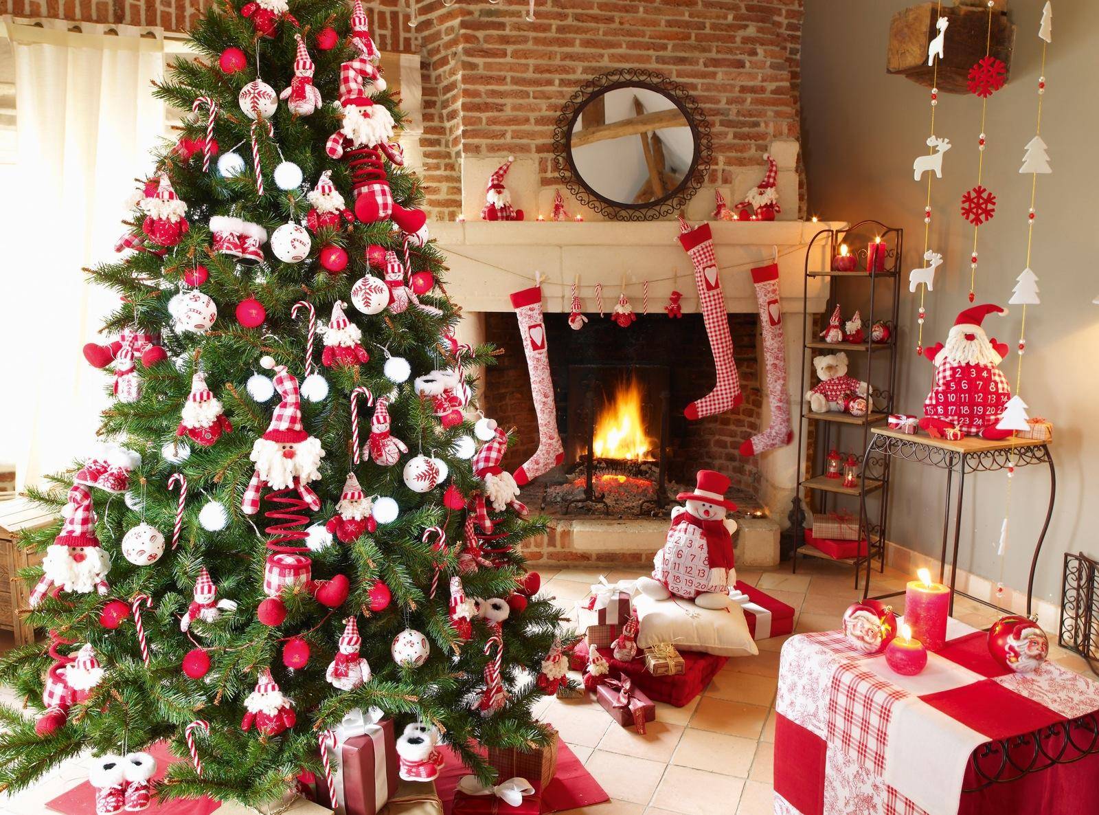 Красно-белая гостиная на Новый год