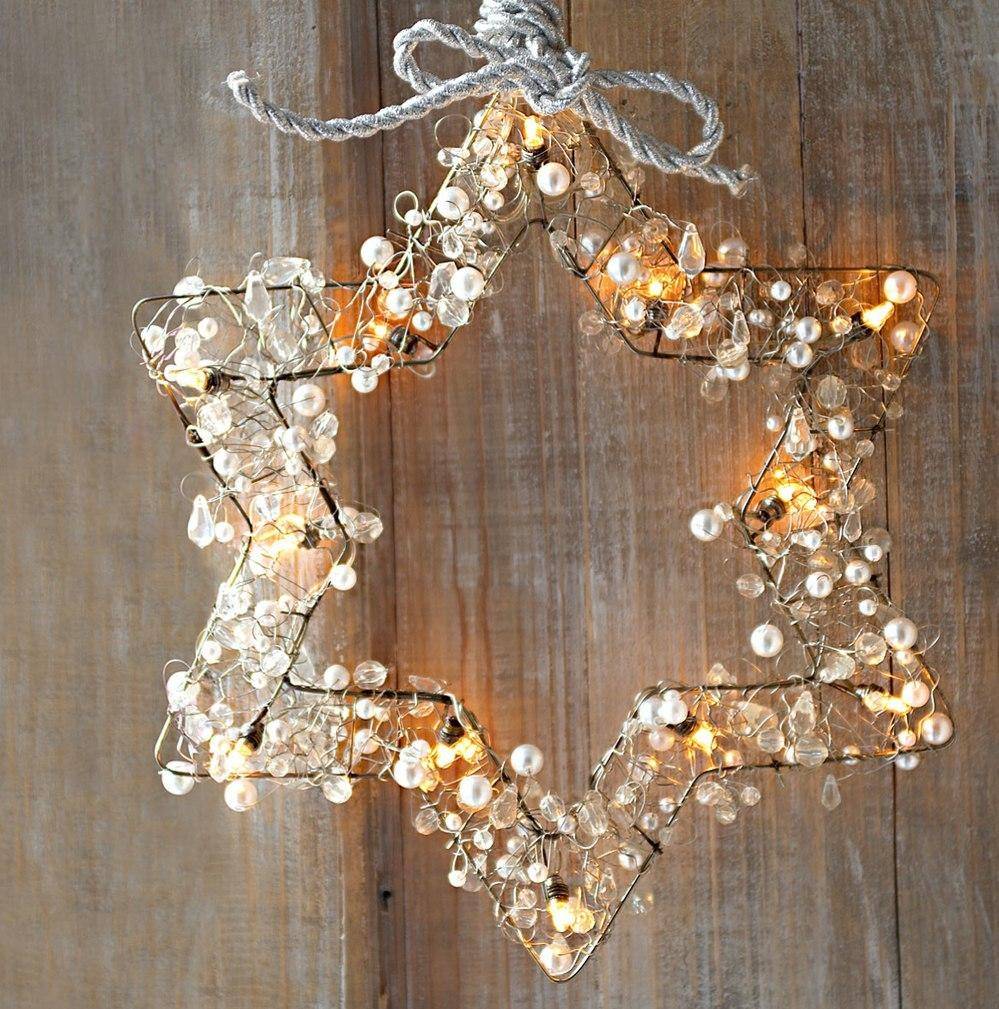 Красивая звезда из проволоки, бусин и гирлянды