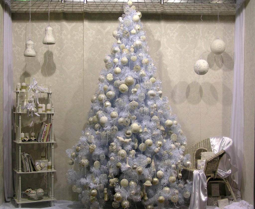 Декор белой елки на Новый год