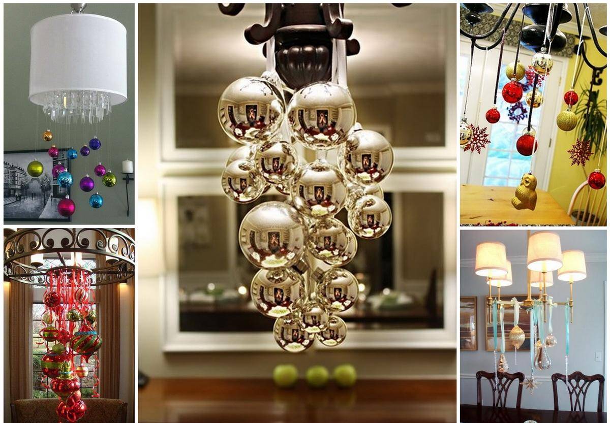 Новогодние люстры, украшенные шарами