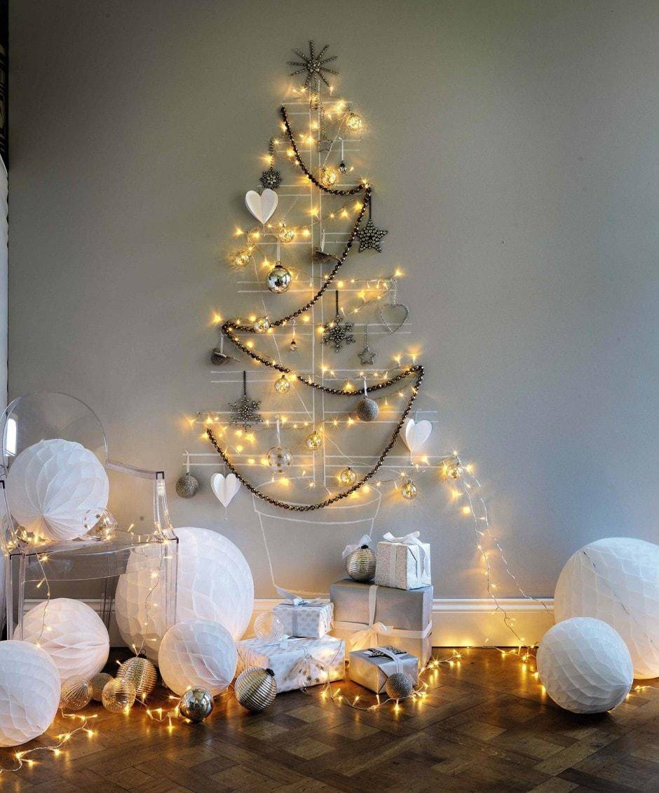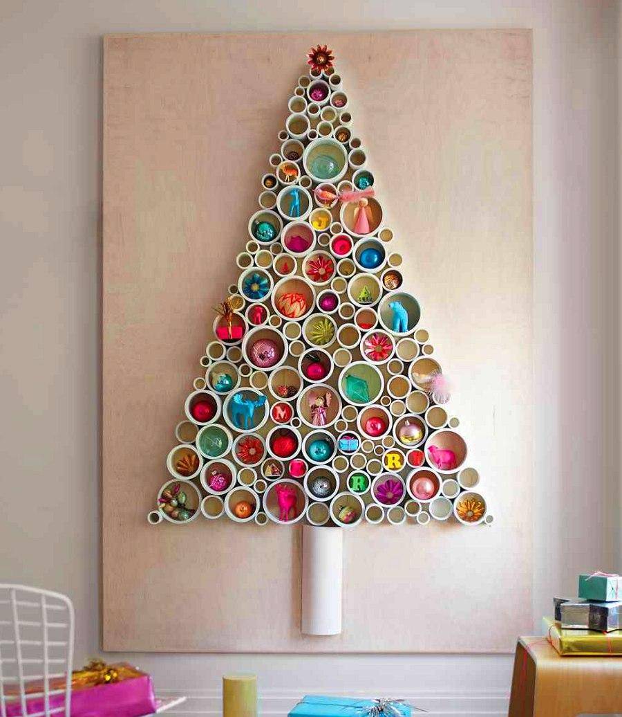 Красивый декор в форме елки на стене