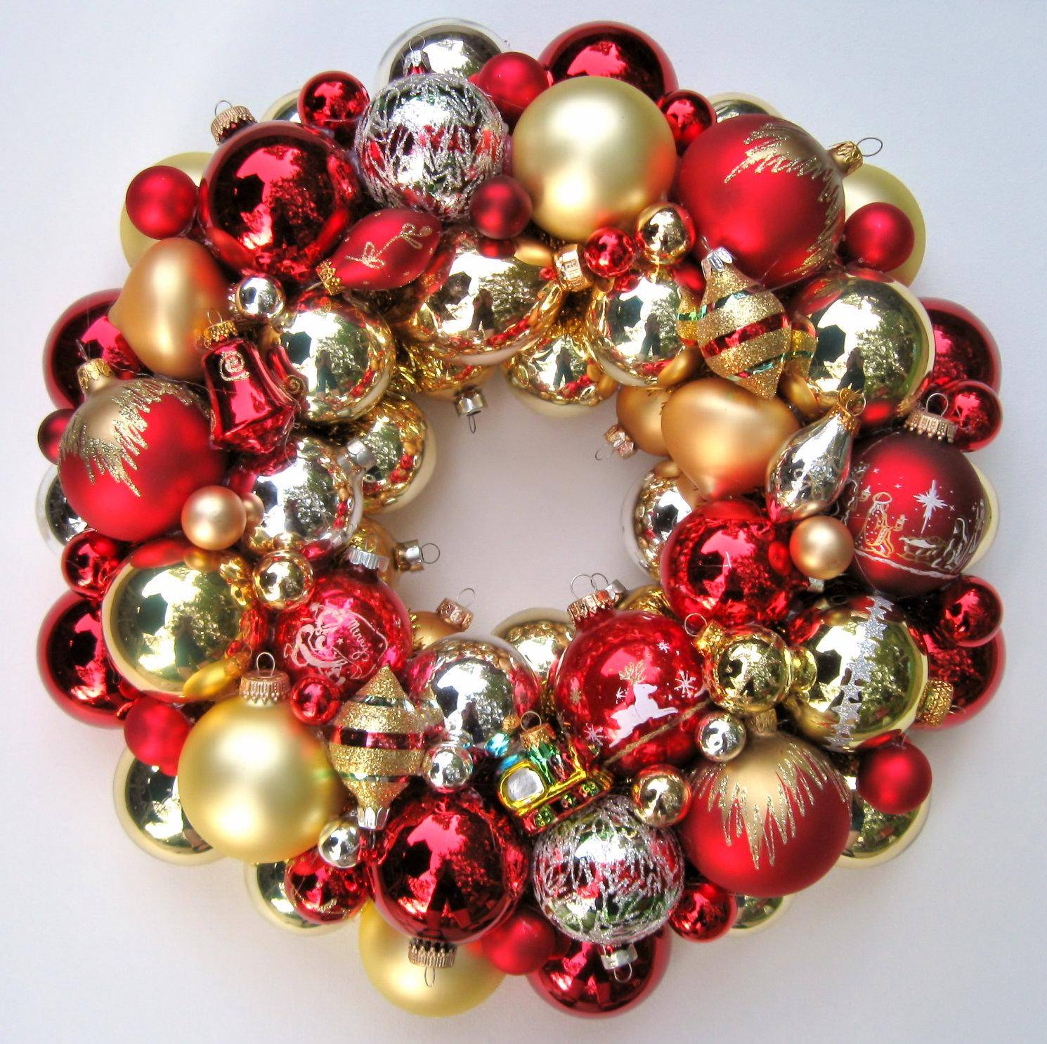Венок из елочных игрушек на Новый год