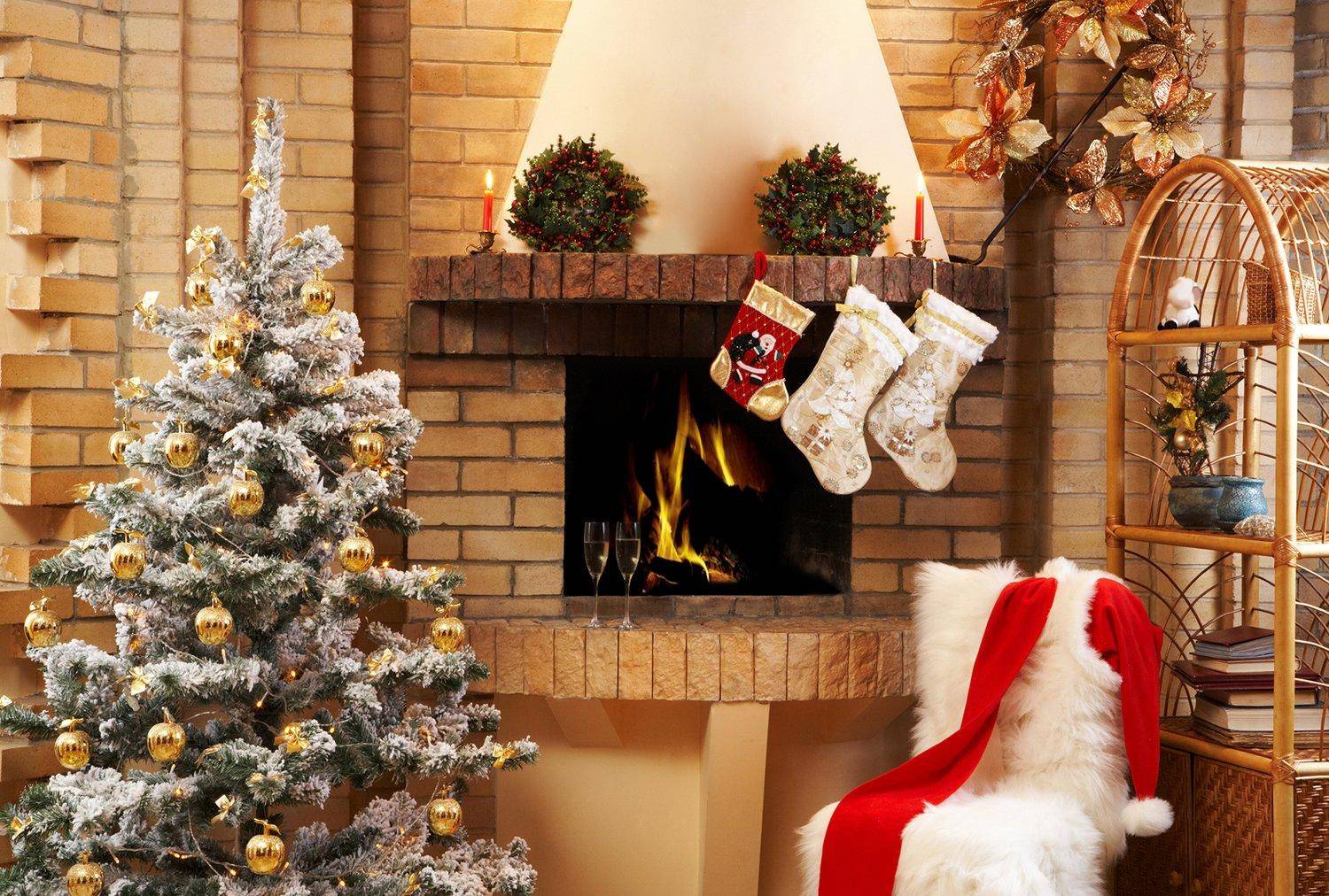 Камин сам по себе является мощным украшением современного интерьера. Традиционно его оформляют рождественскими носками, в которые попадет волшебный подарок от Деда Мороза.